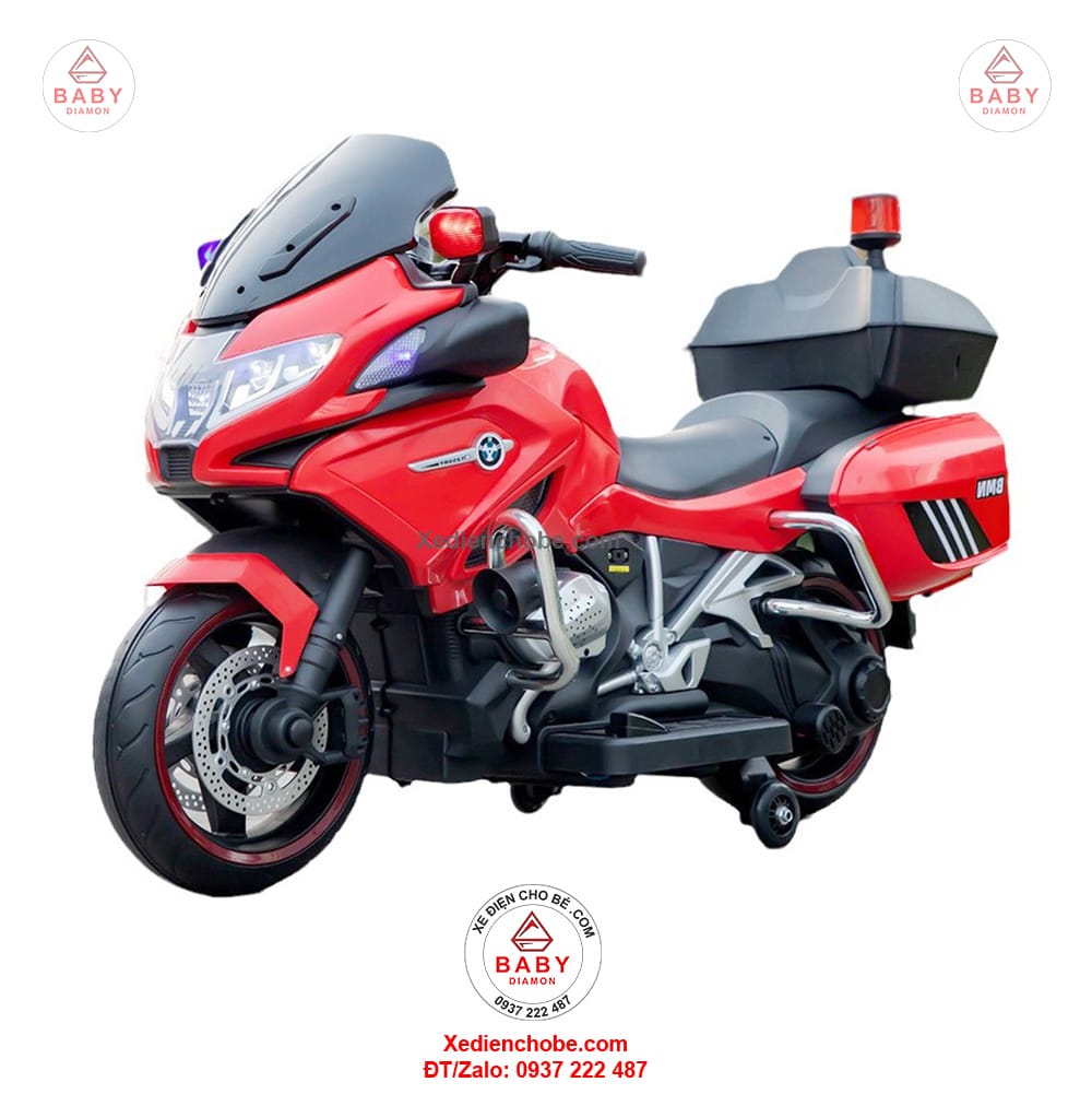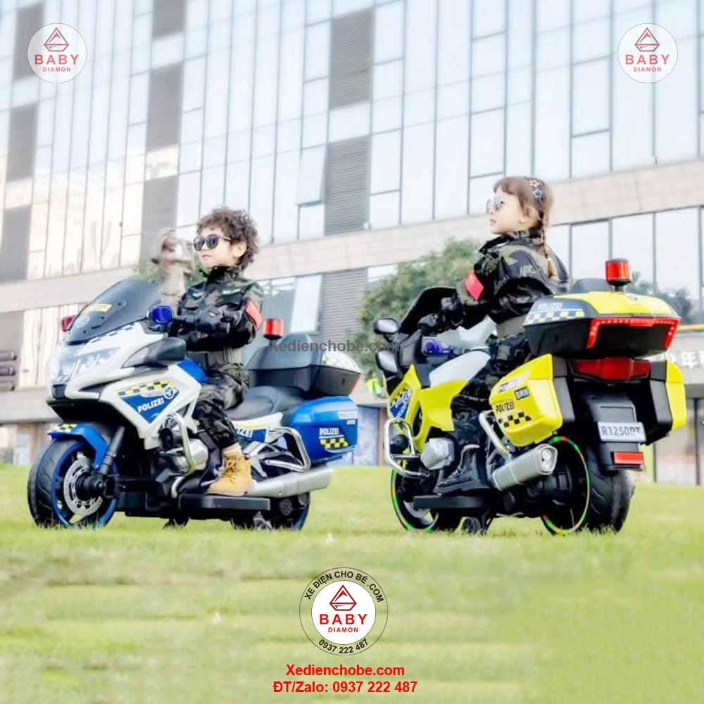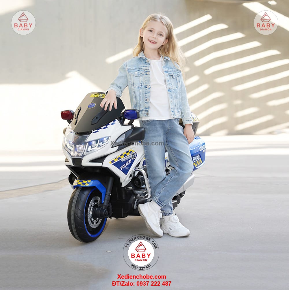 Xe máy điện cho bé cảnh sát Police 888 R1250 được thiết kế kiểu xe mô tô phân khối lớn, hầm hố, mạnh mẽ, thích hợp cho bé dưới 35 kí, xe hoạt động tốt nhất với bé 15-20 kg, hoặc từ 3 đến 7 tuổi, chế độ tự lái cho bé, giúp bé chơi vui hơn